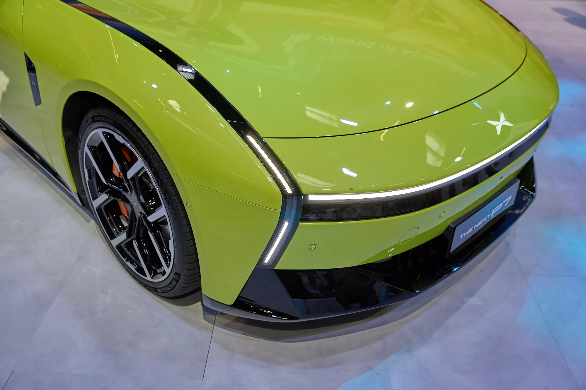 Noul P7 surprinde printr-un design curajos, cu linii inspirate parcă din filosofia Cybertruck. Partea frontală este dominată de o bandă LED pe toată lățimea, completată de lumini de zi verticale, ceea ce conferă o prezență puternică pe șosea. În spate, aceeași temă luminoasă se regăsește cu o bară LED continuă, stopuri verticale și un hayon integrat în geamul posterior plonjat, renunțând la soluția clasică de portbagaj.