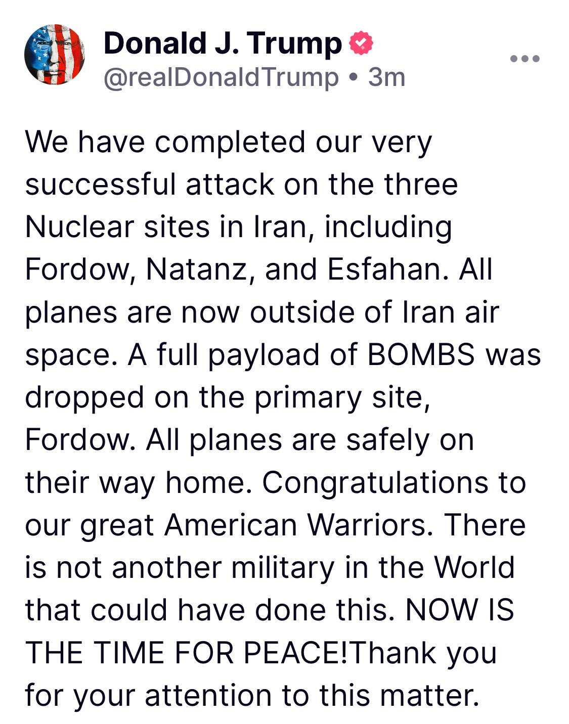 Detalii despre operațiune:„Toate cele trei situri au fost complet și total distruse. A fost un succes militar spectaculos,” a declarat Trump de la Casa Albă.