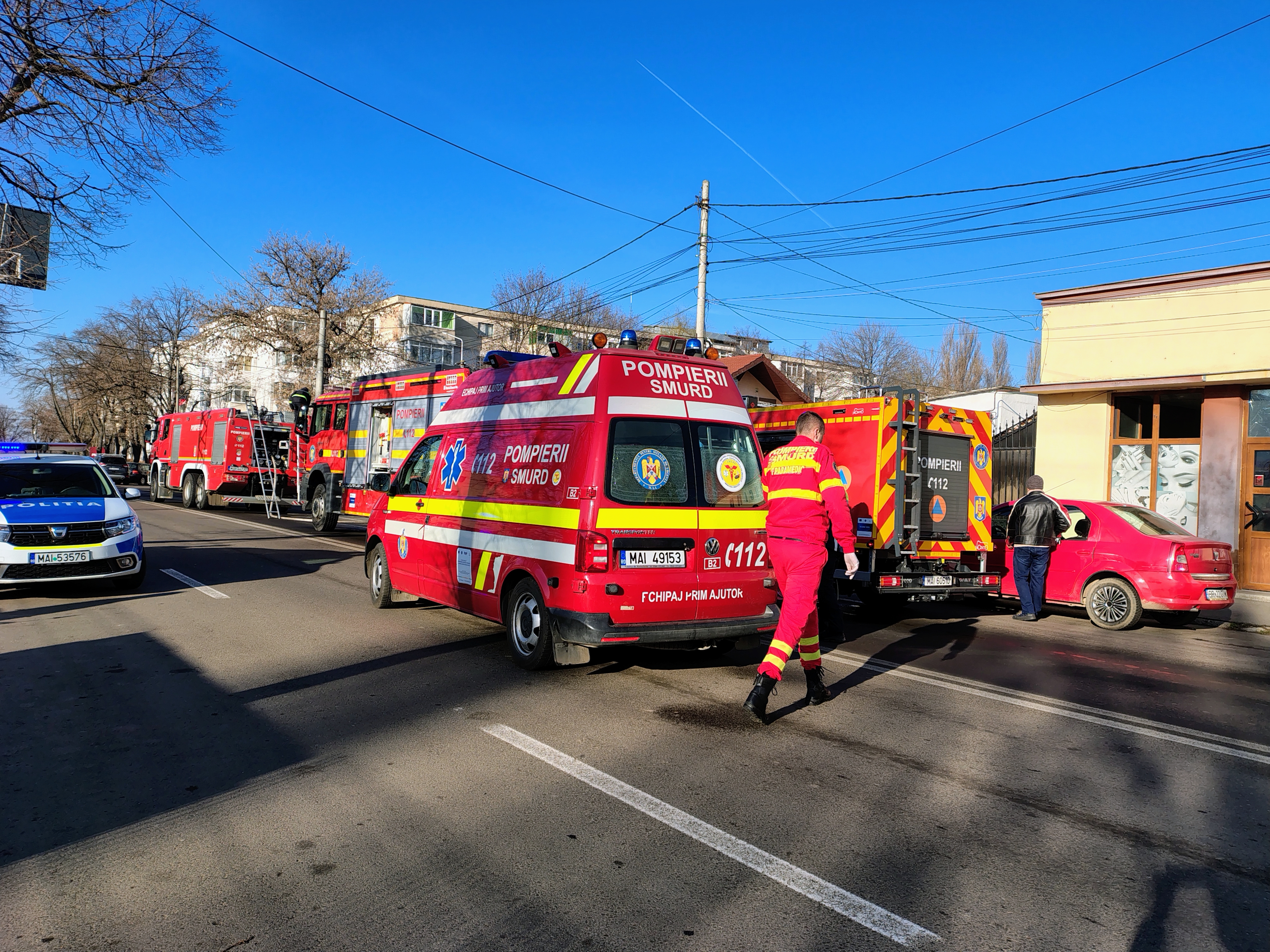 La fața locului au ajuns prompt echipe de intervenție, inclusiv două autospeciale de pompieri, o ambulanță SMURD și poliția. Pompierii au ajuns la locul incendiului în doar două minute de la apelul telefonic, demonstrând o reacție rapidă și profesionistă.