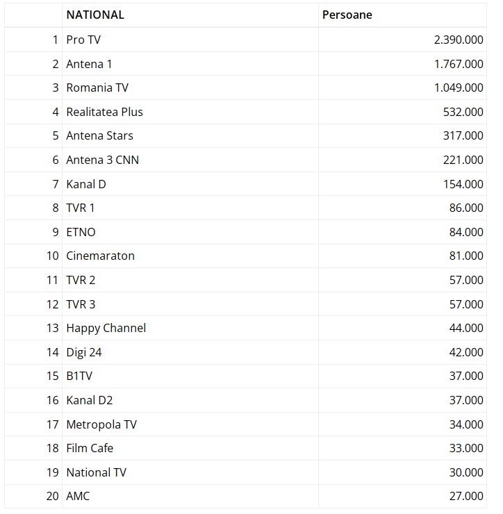 - 1 Pro TV 2.390.000