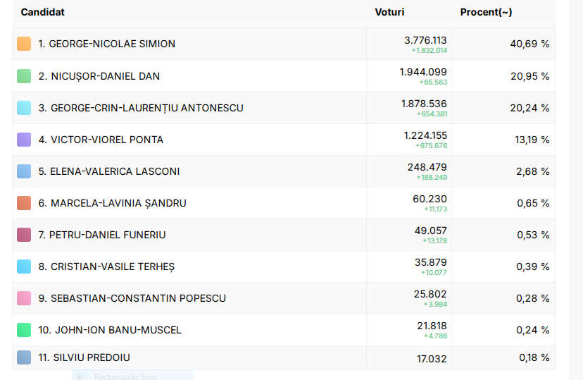 2.NICUȘOR-DANIEL DAN 1.944.099 +65.563 - 20,95 %
